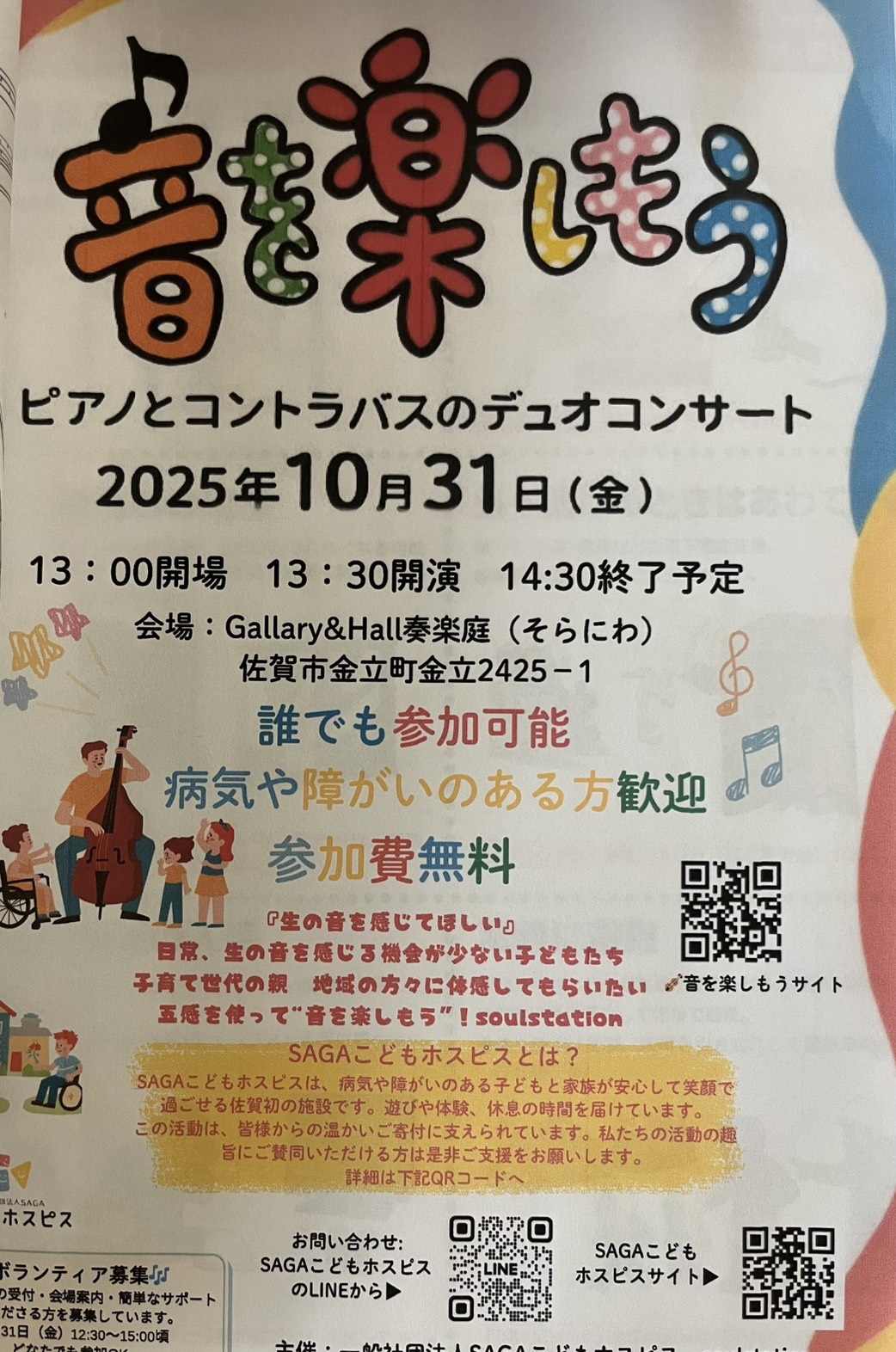 ピアノとコントラバスによるデュオコンサートです。「生の音を感じてほしい」をコンセプトに、日常では生の音に触れる機会が少ない子どもたちや子育て世代の親、地域の方々が五感を使って音楽を楽しめるイベントです。